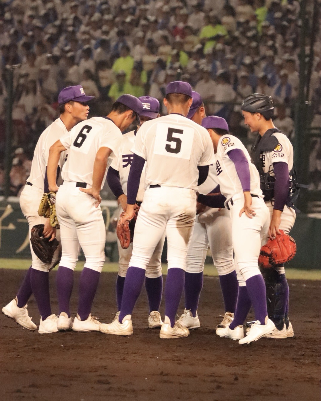 1回2回はヒットで出塁、犠打も決まり自分たちの攻めの形を展開。頼みの上位打線にヒットも出て浮き足立つ鳴門から3回までで7安打、計10安打を浴びせた。先発松村も序盤は打たせて取る投球で鳴門を抑えるも中盤甘く入ったところを捕まった。その後橋本・長尾と繋ぐ奈良大会の系統パターンを展開、それぞれ1点ずつを失ったがピンチを最小限に抑えて終盤の逆転機に繋げた。選抜はアクシデントこそあれ、見せ場をほぼ作ることのできなかった甲子園での戦いから、春夏の奈良・近畿での戦いでつけた自信を感じさせる戦い、力強さも粘り強さも発揮した。