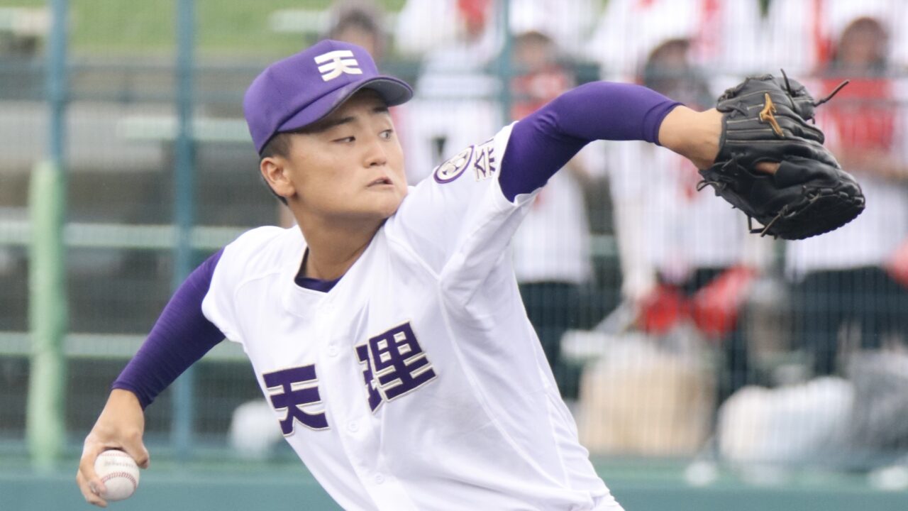 1回表;二死満塁から6番金本が押し出し四球で天理先制。1-0