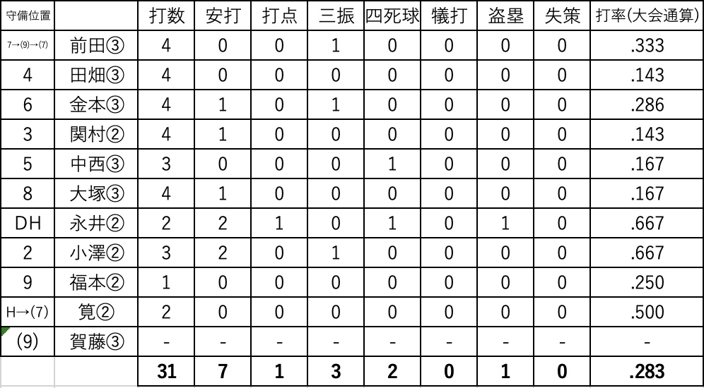 今大会初先発の3年生左腕は高田打線を散発3安打に抑え2塁を踏ませない投球。1死球に打たせる意識を持ちながらも9奪三振と96球の快投で高田打線を封じた。「急成長してくれた」とは試合後の藤原監督談。昨年から公式戦のマウンドを経験し、同学年の長尾・橋本らと同じく経験豊富な3年生左腕。待ちわびた会心の投球は投手陣の新たな柱の確立を期待させる。