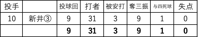 9回表;今大会初先発の左腕新井が完投、最終回を三者凡退に抑え9回3安打9奪三振で完封勝利。1-0